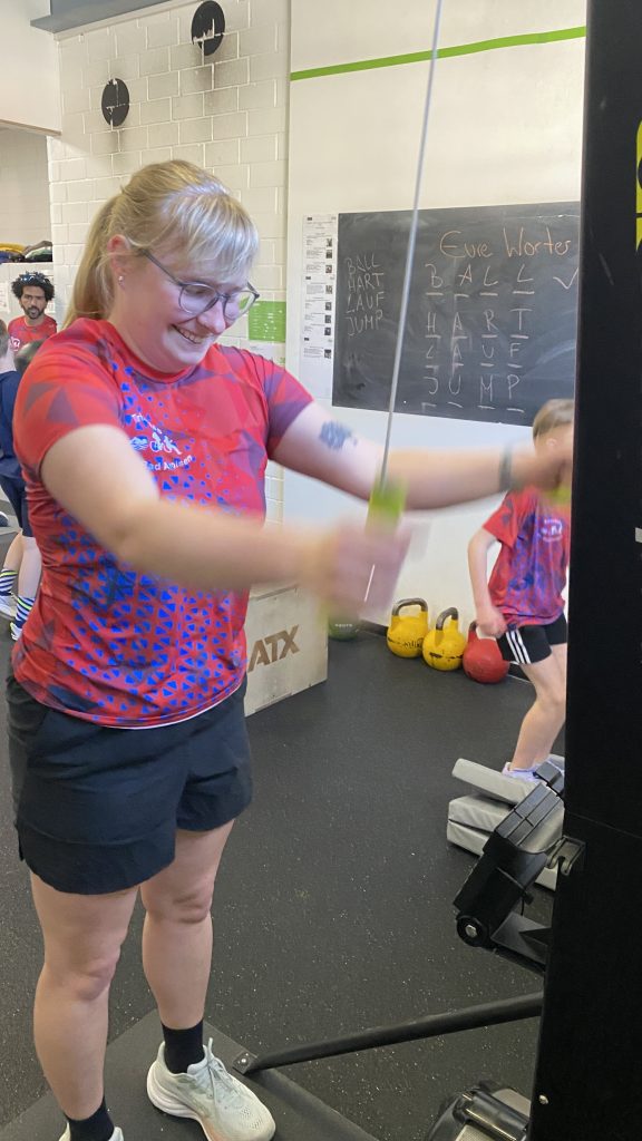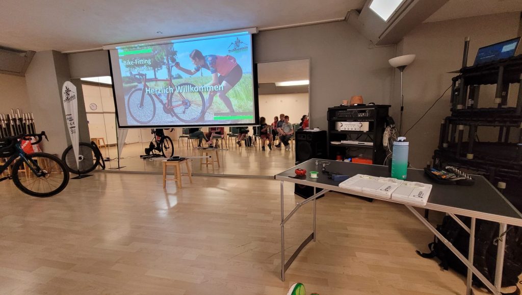 Nachmittags gab es wieder zwei parallele Programmpunkte. Während sich die einen beim Kraft-Ausdauer-Zirkel á la Hyrox auf der Trainingsfläche des 3SeenFitness auspowerten, konnten die Anderen von Thomas fachkundiges Feedback zu ihrer Sitzposition erhalten.